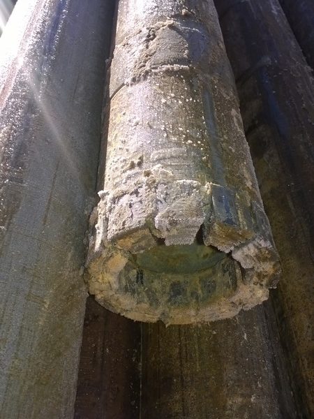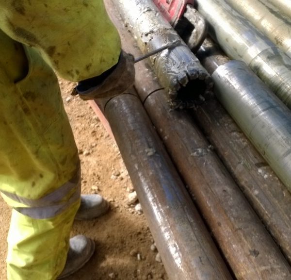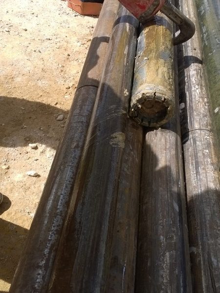 1° serie #7 en un terreno fracturado sin retorno de fluido, se perforó 20.60 mts y con un avance 8-9-10-11 (RPI) pulgadas por minuto.