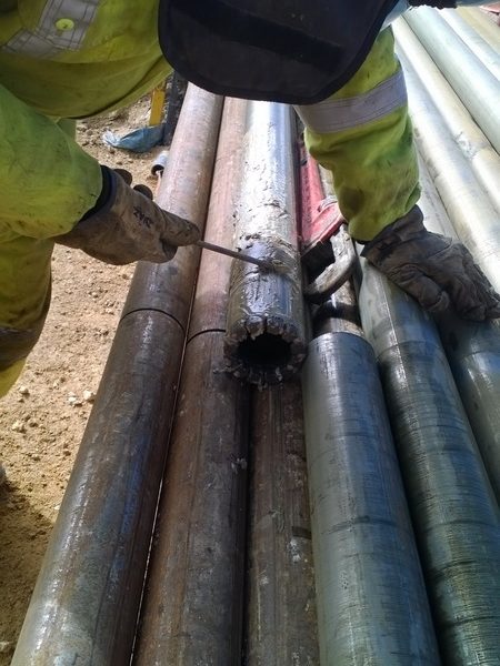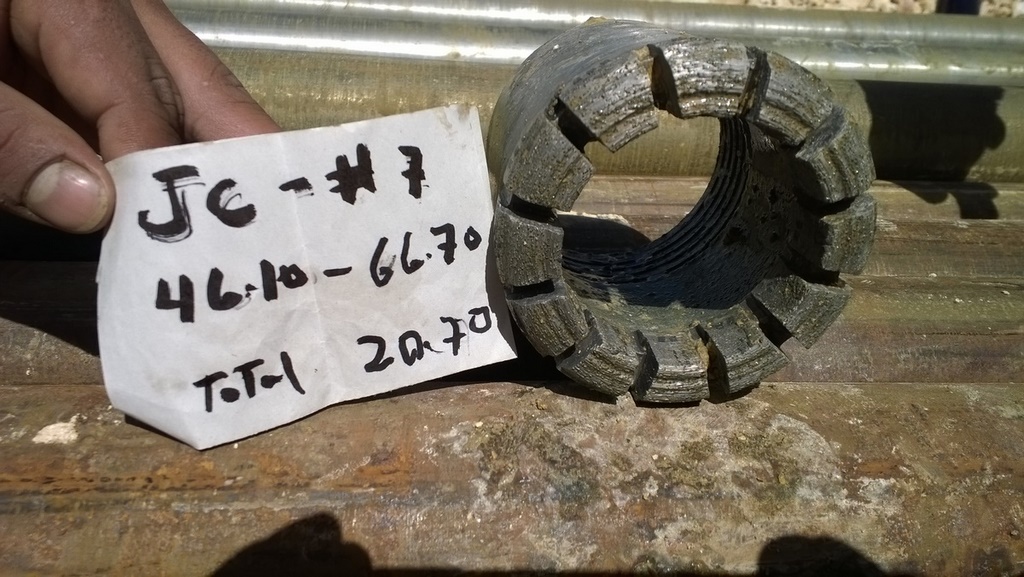 Con un corte de avance 7-8-9 (RPI) pulgadas por minuto se perforo 51.70  mts. y quedando con una vida útil de 75% a 80% como se ve en la imagen:
